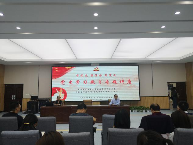 与校资产经营公司全体党员教职工于5月13日下午2:20分在学生事务中心一楼学术报告厅联合开展“学党史、坚信念、跟党走”党史学习教育专题讲座。本次讲座由自治区党委党史学习教育宣讲团成员,卡哇伊直播
