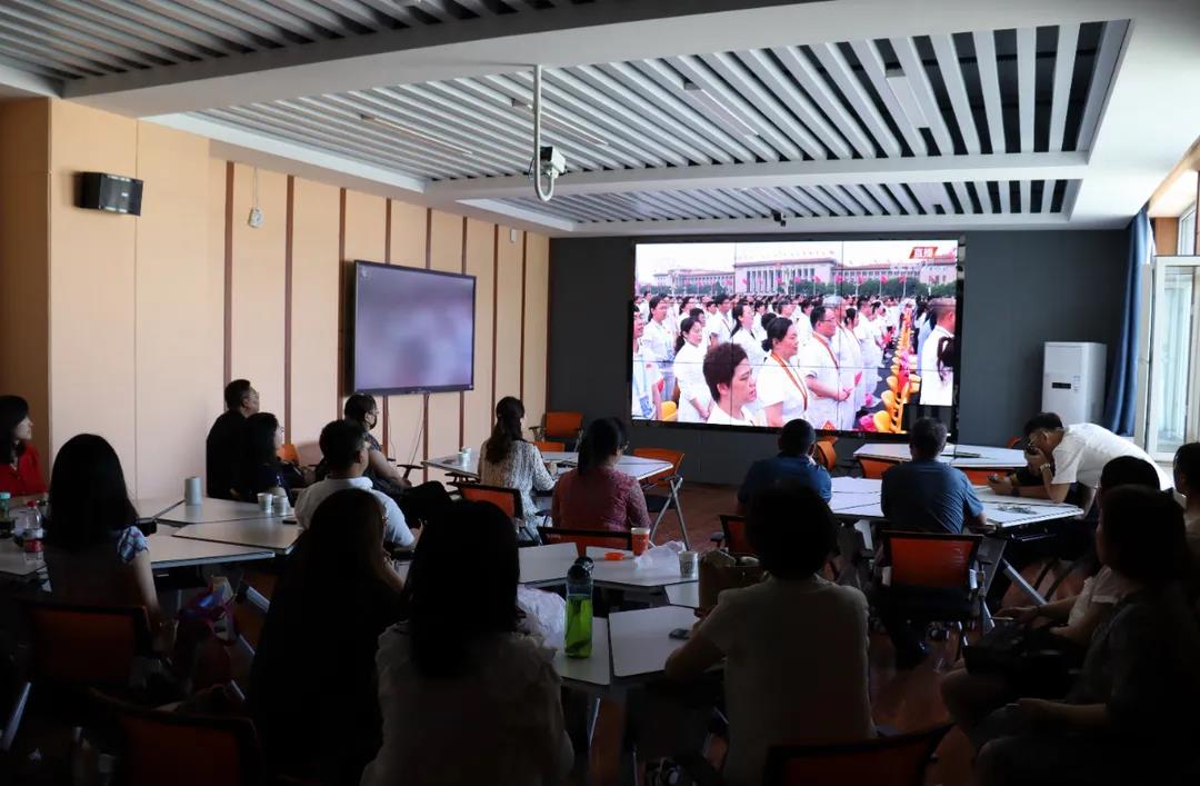 全体教职工以及学生代表在学院楼会议室集中收看了庆祝中国共产党成立100周年大会,并于会后第一时间组织召开学习交流会,学习贯彻习近平总书记在庆祝中国共产党成立100周年大会上的重要讲话精神。
