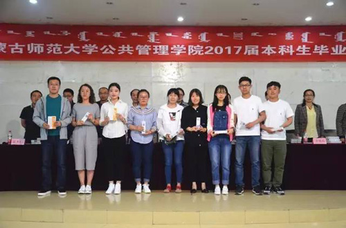 由公共管理学院各领导向13级毕业学生颁发纪念品。