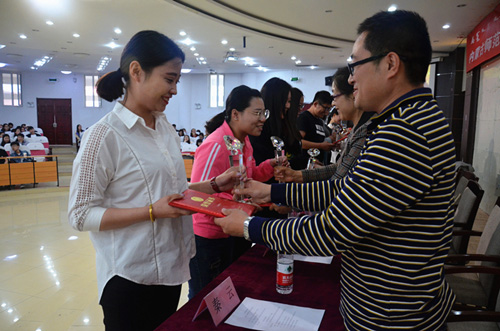 接着由公共管理学院党总支书记王雪莹老师宣读表彰决定并对获奖同学进行授予奖杯证书。