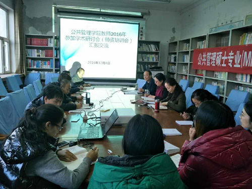 交流汇报主要涉及以下内容:杨艳老师分享了她参加全国第四届社会研究方法论坛的收获;陈玲老师分享了她参加第二届财税专业骨干教师高级研修班学习的收获;王永明老师分享了2016年度MPA院长工作会议的主要精神和会议内容;金晓蕊老师分享了第六届公共管理与政治学骨干教师研修班学习的体会;王雪莲老师分享了网店运营实战技能高级师资研修班以及首届互联网创新创业教育人才培养论坛的学习收获;甘月文院长分享了他参加的城市发展与社会治理论坛的心得体会;秦云老师分享了刚刚在海口结束的“大学生学业指导与生涯发展辅导能力提升”研修班学习的收获,并对本院学生工作的开展提出了几点建设性的建议。甘月文院长作了点评和总结,他强调:学院鼓励教师出去参加学术会议和师资培训,因为教师积极投身到学术界的高端交流活动中,学术信息才能常新,学术视野才会开阔,这样做有利于业务水平的提升。
