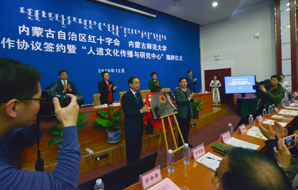 联合组建的“人道文化传播与研究中心”正式落户公共管理学院。标志着公共管理学院在今后的工作中,将结合边疆少数民族地区实际,切实承担起内蒙古红十字运动相关理论、人道文化和政策法规研究工作,为内蒙古红十字会提供理论支撑和政策法规咨询。中心成立得到了自治区党委宣传部的高度重视和大力支持,列入了自治区哲学社会科学重点研究基地规划,成为助推师范大学“双一流”建设的重要的哲学社会科学研究平台,能够结合新形势下高校思想政治工作,培育和践行社会主义核心价值观,全面弘扬“人道、博爱、奉献”的红十字精神,引领人道文化在高校传播,积极营造关爱他人、奉献社会的良好氛围。公共管理学院努力将中心打造为新时期红十字文化品质提升和红十字事业发展的新动力、新引擎。