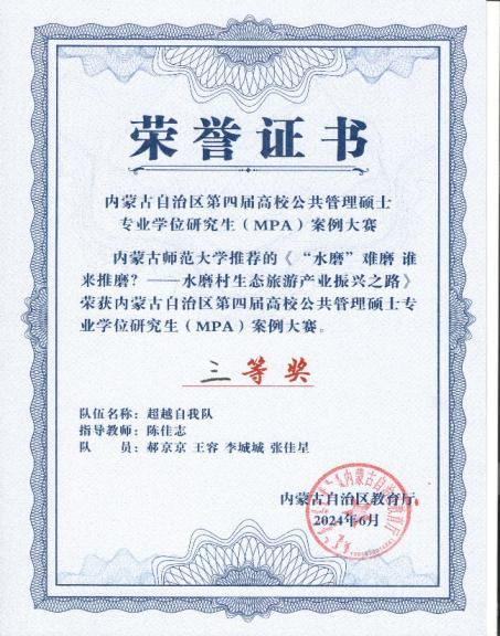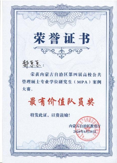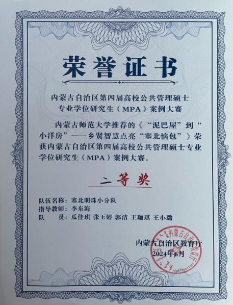 在本次大赛中,我院的2支参赛队伍在李东海老师和陈佳志老师的悉心指导下,凭借扎实的专业知识和出色的团队协作,取得了骄人的成绩。李东海老师指导的“塞北明珠小分队”充分运用公共管理理论,对案例的深入剖析,荣获大赛二等奖。