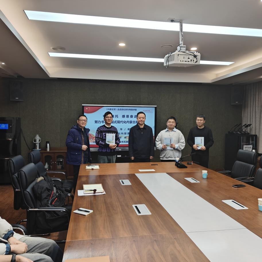 在讲座的互动环节,同学们积极提问,与胡益华教授就内蒙古发展的相关问题展开了热烈的讨论。为了进一步鼓励同学们对内蒙古学的研究兴趣,胡益华教授在讲座过程中,为三位在相关领域表现出浓厚兴趣与潜力的同学赠送了专业书籍《内蒙古学概论》,激励他们在学术道路上不断探索前行。此次讲座持续了两个多小时,胡益华教授的精彩演讲赢得了现场师生的阵阵掌声。讲座结束后,同学们纷纷表示,通过此次讲座,对中国式现代化有了更深刻的认识,对内蒙古的未来发展充满了信心。同时,也更加明确了自己作为新时代青年的责任与使命,将努力学习专业知识,为内蒙古的发展贡献自己的力量。
