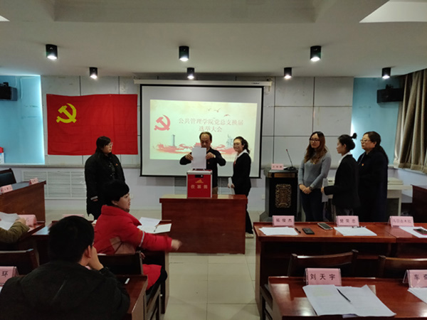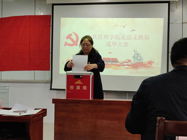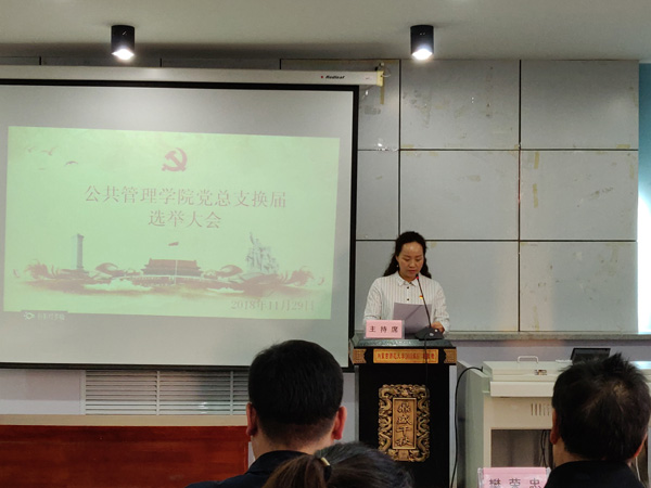 经学校党委批准,20181129日下午四时,公共管理学院党总支换届选举党员大会在MPA教室召开。学校党委组织部荣丽军同志莅临会议进行指导。