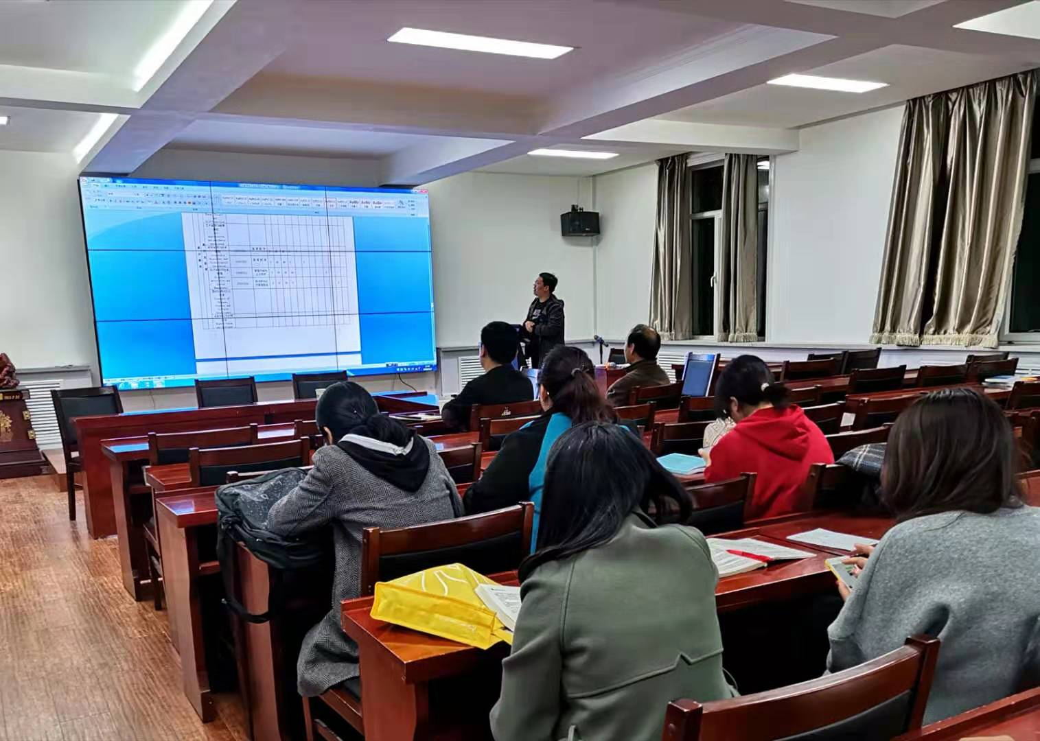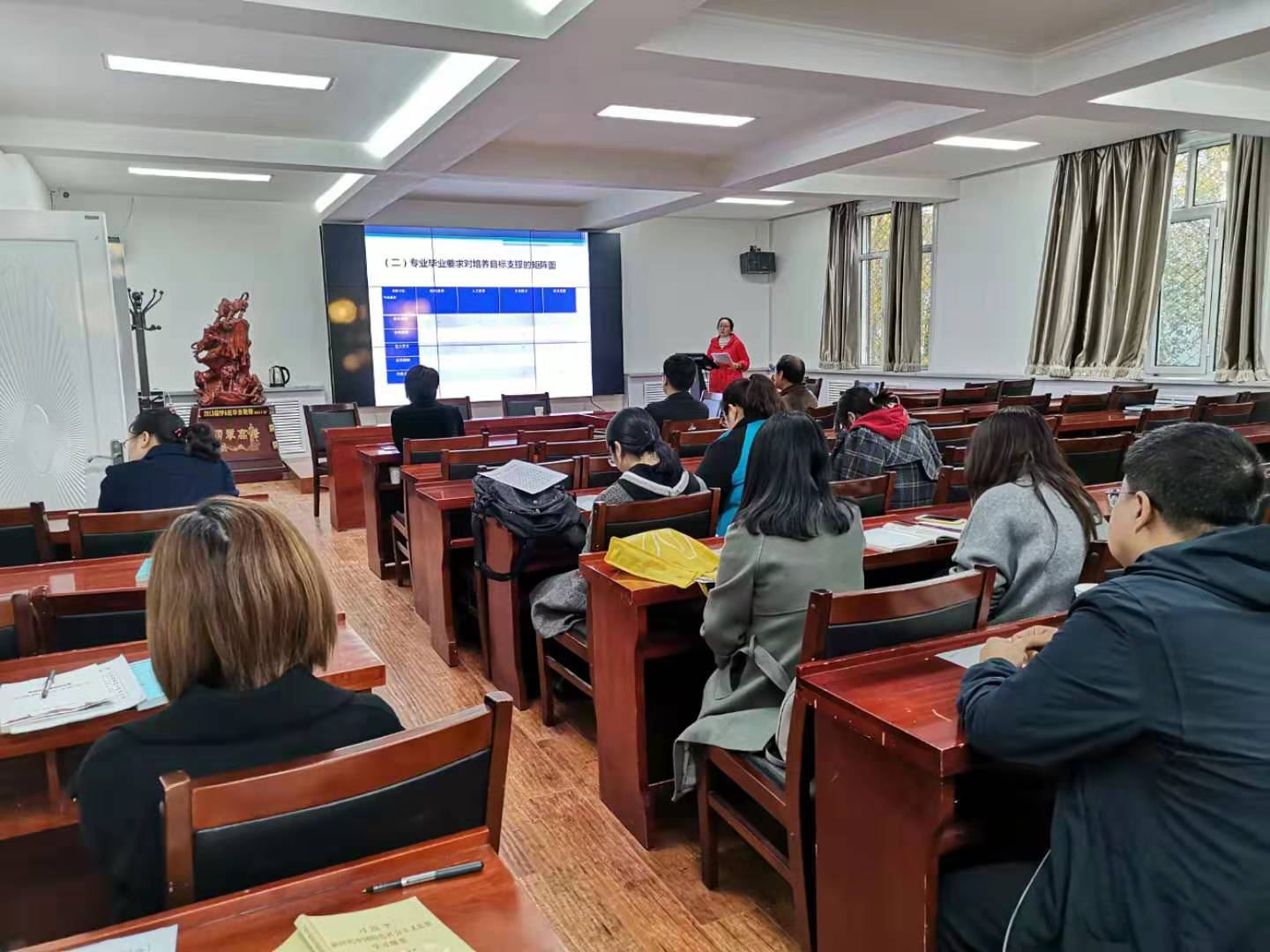 会上,三位系主任分别就专业培养目标、毕业要求、专业建设标准、专业建设特色、专业调研情况、专业课程设置整体框架、课程设置、培养标准实现矩阵与新旧培养方案之间的区别等内容进行详细的汇报。