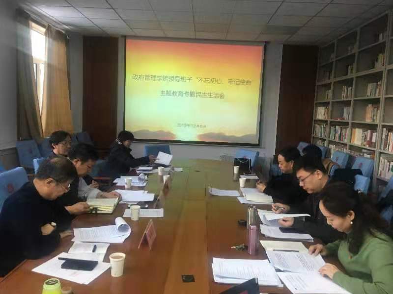 党总支在文史楼资料室召开处级领导干部“不忘初心、牢记使命”主题教育专题民主生活会,政管院班子成员参加会议,非党员班子成员、学院环节干部及非党员代表列席会议,副校长王来喜、校党委第三指导组石晶瑜、王瑞昌、刘新春到会指导。会议由政管院党总支书记樊荣忠主持。