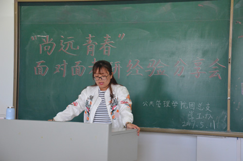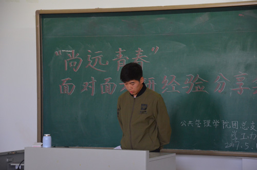 为了让同学们更好的掌握未来的罗盘、规划自己的人生,树立迎接未来的信心,以“尚远青春”为主题的系列经验交流会于2017年5月11日行知楼208教室举办。