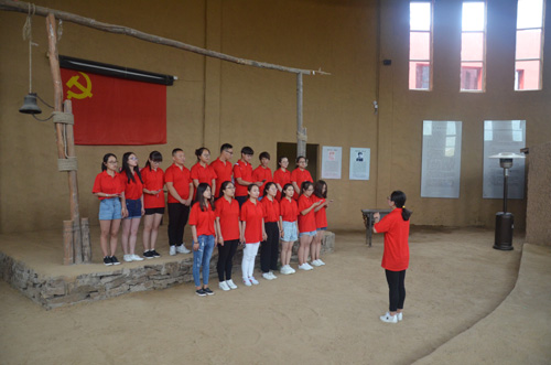 同学们跟随讲解员聆听根据地的革命历史,缅怀革命先烈,大青山革命根据地的革命精神使我们每个人都受到一次心灵的震撼和灵魂的洗礼。参观结束后,观摩团在根据地展馆的汇报厅举行了以“缅怀先烈,坚定信仰,不忘初心,继续前行”为主题的党日活动。全体党员重温了入党誓词,唱颂了红歌《歌唱祖国》《强军战歌》《沁园春·雪》,大家都积极参与其中,同学们纷纷表示要努力向党看齐,做有理想、有信念的大学生。