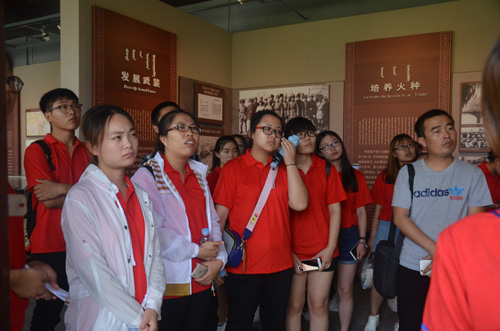 党总支副书记乌日古木拉老师称赞了同学们的表现,并与同学们亲切交谈,一同分享参观革命根据地的感受,乌书记也进一步强调本次活动的重要意义。最后,全体老师与同学在报告厅合影留念,结束了本次的暑期“三下乡”社会实践活动。