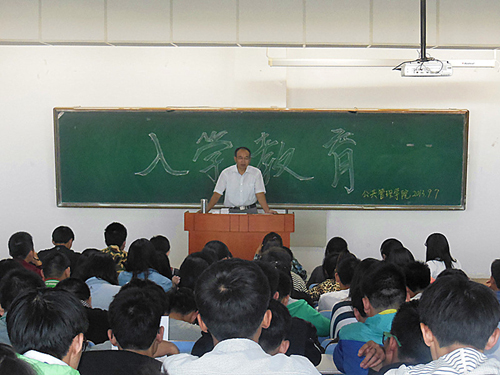 2013年9月7日上午由学院组织的新生入学教育在行知楼展开,张升副院长主持本次活动。这次入学教育目的是让新生了解学校和卡哇伊直播概况 以及刚步入大学应该了解的诸多事项,张副院长以幽默风趣的方式向新生介绍了学校的学分制度以及绩点制度,让新生对大学的学习有了更深一步的了解。