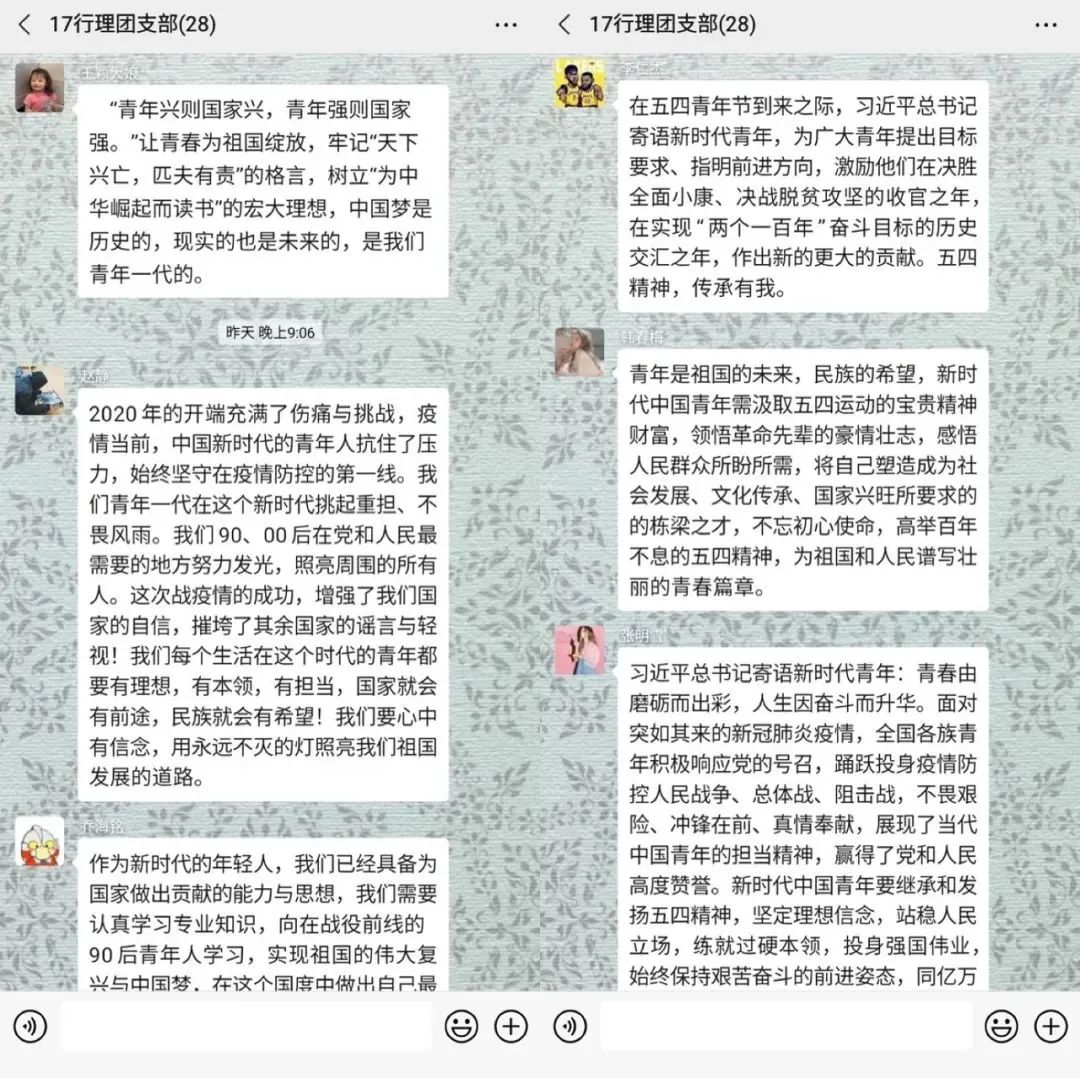 为贯彻习近平总书记五四寄语,卡哇伊直播 各班于59日至10日,开展学习宣传贯彻“习近平总书记五四寄语精神”主题团日活动,活动以多样的形式在不同的台上开展。各班同学积极参加并发表感悟。