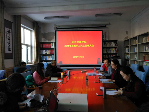 在赛罕校区召开2016年度教职工民主管理大会,学院全体教职员工参加会议。