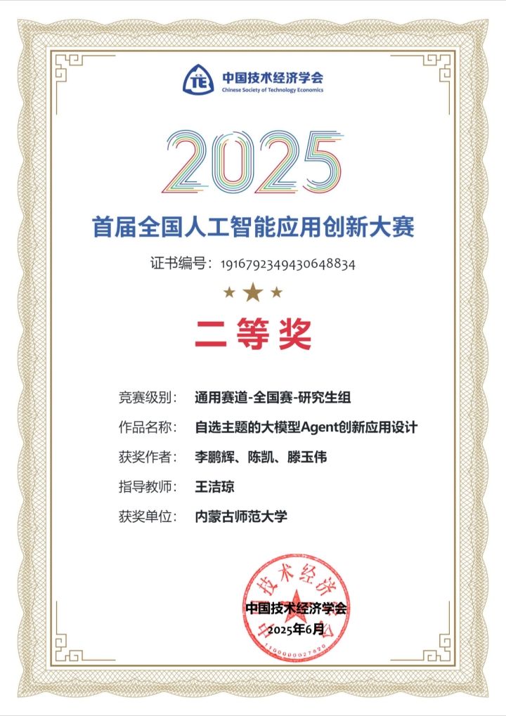 公共管理专硕研究生李鹏辉、陈凯、滕玉伟,指导教师王洁琼,依托公共管理领域的实践洞察与研究积累,结合人工智能技术创新应用,最终荣获全国赛研究生组二等奖,充分展现了卡哇伊直播