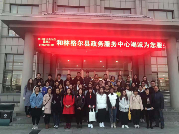 2018年11月6日下午,在课堂教学进行了一个小时后,老师宣布接下来的教学将移步到和林格尔县完成。在甘月文老师、拓俊杰老师和王洁琼老师的带领下,18级公共事业管理班的同学走出教室,走向属地政府,参观了和林格尔县社会管理指挥中心、和林格尔县政务服务中心、人力资源和社会保障局。这些单位都是本课程所讲的从事公共管理的部门。
